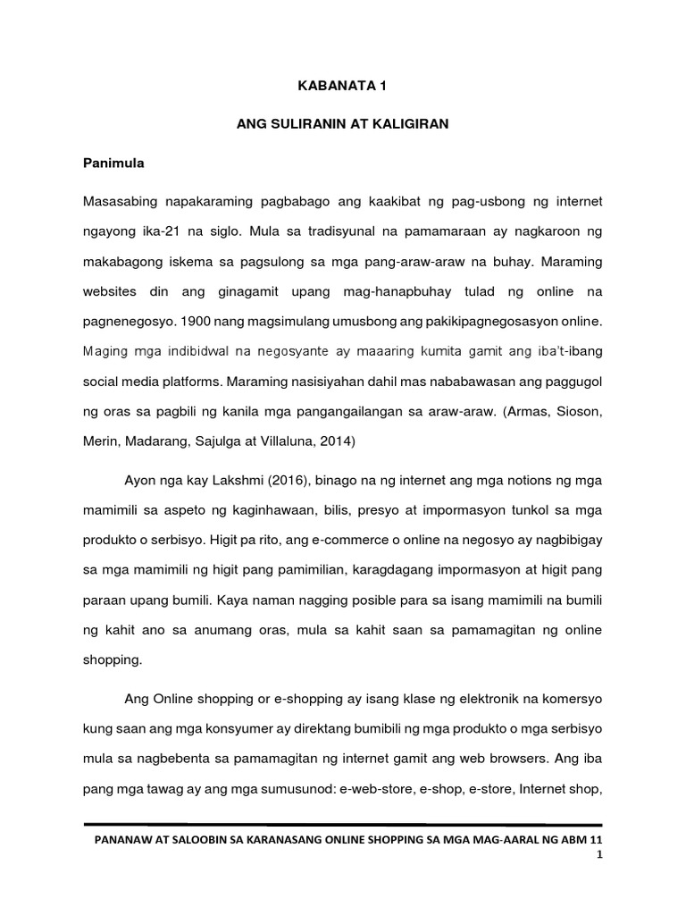Sa pamamagitan ng pananaliksik na ito malalaman ng mga mambabasa ang pagkakaiba at pagkakapareho ng tradisyunal na pamimili at online shopping bilang makabagong pamamaraan sa pagtatag ng negosyo.