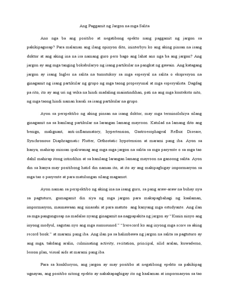 Doc Pag Aaral Tungkol Sa Epekto Ng Paggamit Ng Mga Salitang Balbal Sa Piling Mag Aaral Ng 11 Abm Jovelyn Tinio Academia Edu