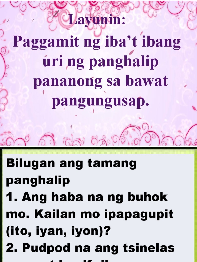 19062019 pagtalakay sa 5 uri ng panghalip at kanilang mga halimbawa. Ang mansanas ay kanila. Mahaba ang buhok ni Ate.