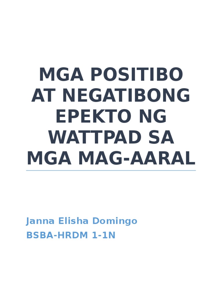 MGA POSITIBOAT NEGATIBONG EPEKTO NG WATTPAD SA MGA MAG-AARAL. Nakakatulong sa pakikipag komunikasyon sa mga mahal natin sa buhay. Ang Social Media ay website at application ginagamit ng karamihan upang makipag.